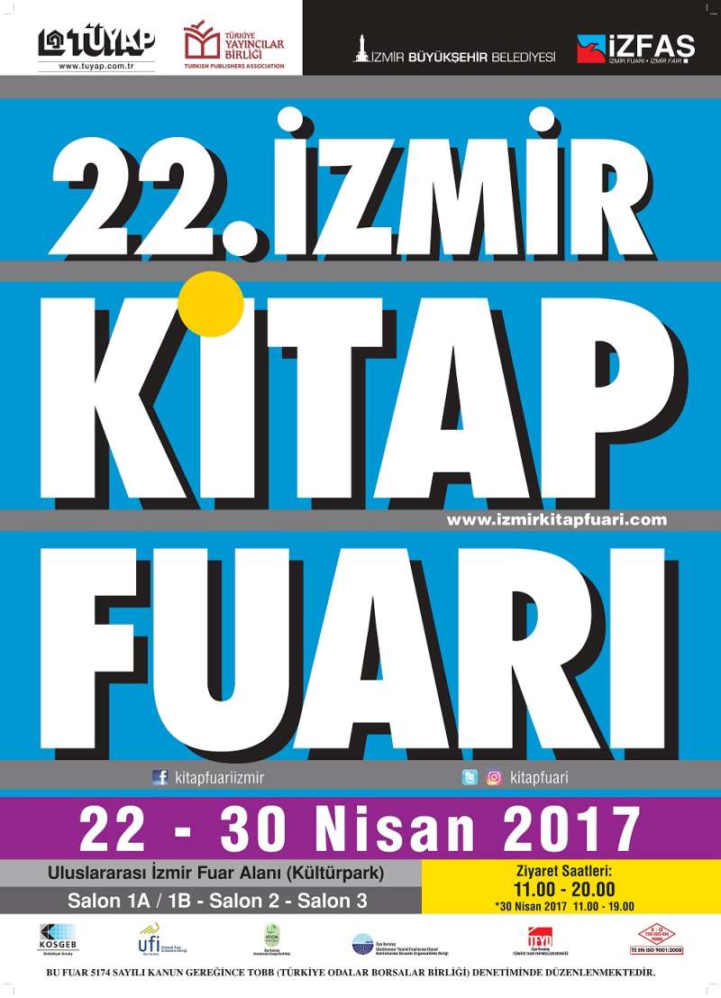 Tüyap Tüm Fuarcılık Yapım A.Ş. tarafından, Türkiye Yayıncılar Birliği işbirliği beraberinde hazırlanan 22. İzmir Kitap Fuarı, 22-30 Nisan 2017 tarihleri arasında her zamanki yerinde Kültürpark’ta (Uluslararası İzmir Fuar Alanı’nda) düzenlenecek.